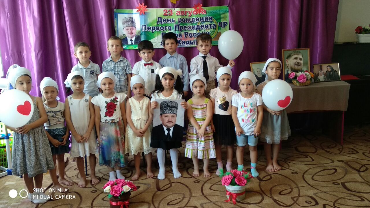 23.08.2018В нашем детском саду был проведен утренник приуроченный к 67-й годовщине нашего первого президента А.А.Кадырова. В память о нем дети читали стихи, пели песни. Воспитатели ознакомили детей с историей его жизни, и героизме первого президента.